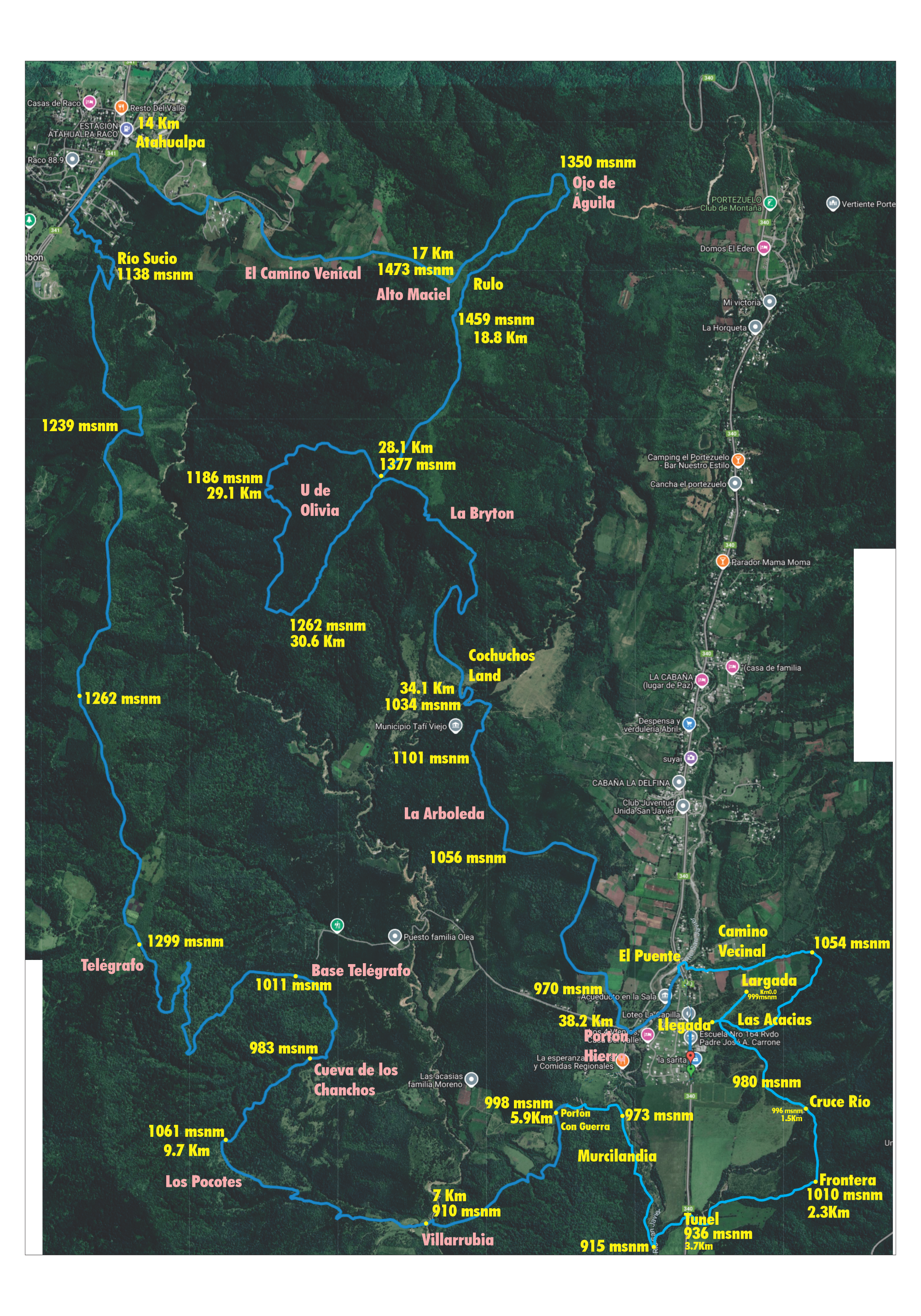 Desde la largada se interna en zonas de bosque y monte con suelos variados (tierra, barro su llueve, cauces de ríos con poca agua, raíces, ramas y/o árboles caídos sobre el sendero, puentes colgantes y otros).